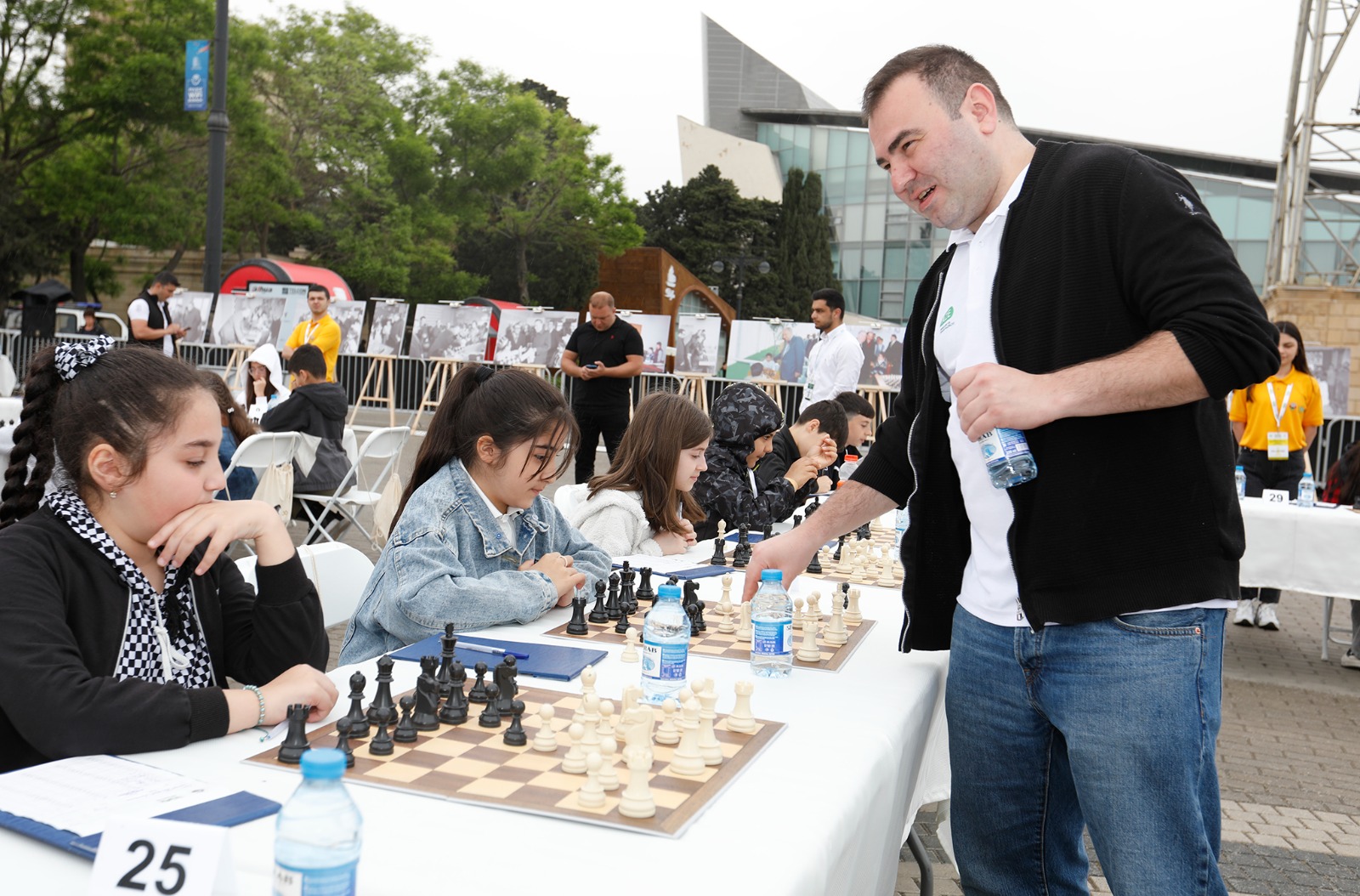 Sports.az xəbər verir ki, seans zamanı üçqat Avropa çempionu, gənclər arasında ikiqat dünya çempionu Şəhriyar Məmmədyarov, üçqat Avropa çempionu, Dünya Kubokunun qalibi Teymur Rəcəbov, üçqat qitə çempionları Rauf Məmmədov, Qədir Hüseynov, eyni zamanda müxtəlif yaş qrupları üzrə dünya, Avropa çempionatının qalib və mükafatçıları Abdulla Qədimbəyli, Zeynəb Məmmədyarova və Gülnar Məmmədova balaca və yeniyetmə şahmatçılara qarşı mübarizə aparıb.